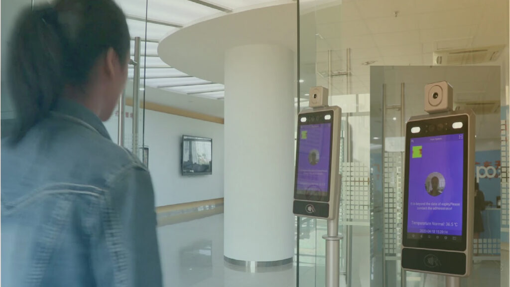 En la imagen el control de acceso "sin contacto" del futuro. La persona ingresa o sale solo al registrar su rostro.
