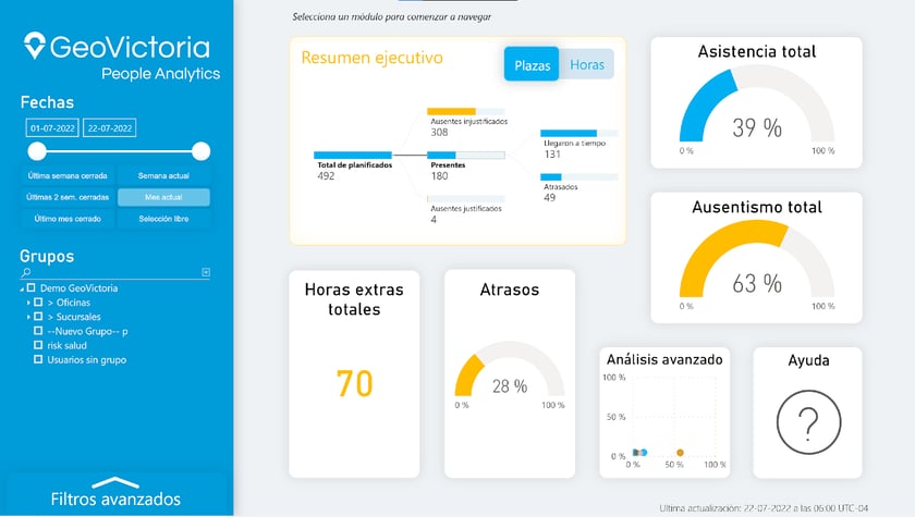 Captura de imagen de la interfaz interna del servicio de People Analytics de GeoVictoria.